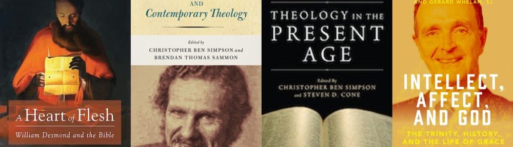 “Way(s) to God: William Desmond’s Theological Philosophy,” with D. Stephen Long. In William Desmond and Contemporary Theology, 139–164. Edited by Christopher Ben Simpson & Brendan Thomas Sammon. Notre Dame, IN: University of Notre Dame Press, 2017. https://doi.org/10.2307/j.ctvpj795j.9